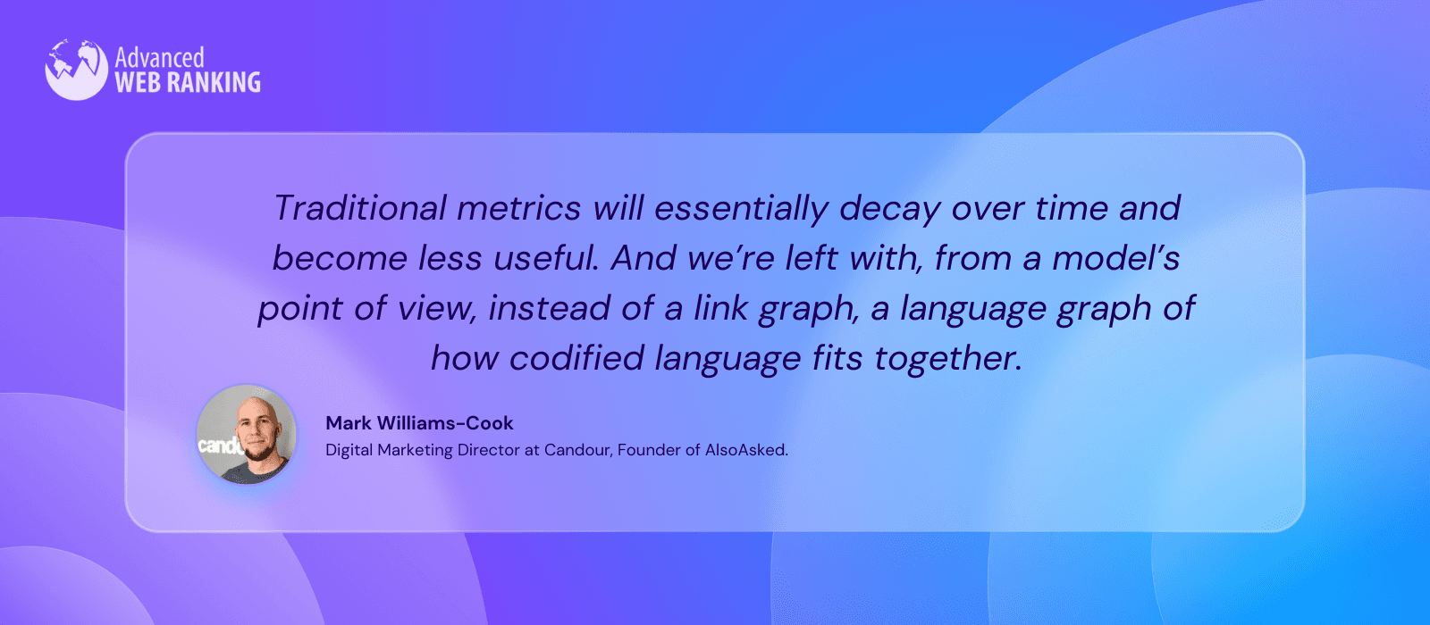 “Traditional metrics will essentially decay over time and become less useful. And we’re left with, from a model’s point of view, instead of a link graph, a language graph of how codified language fits together.”