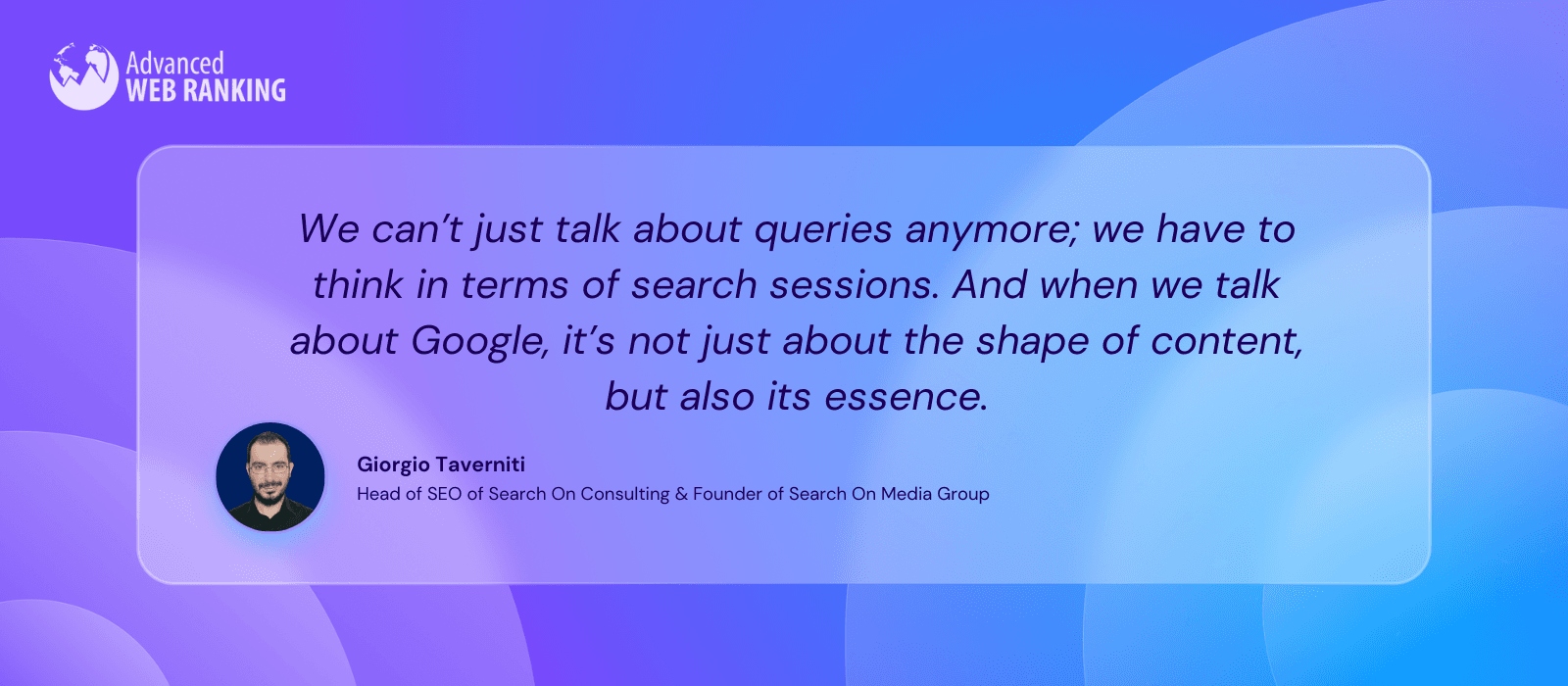 “We can’t just talk about queries anymore; we have to think in terms of search sessions. And when we talk about Google, it’s not just about the shape of content, but also its essence.”