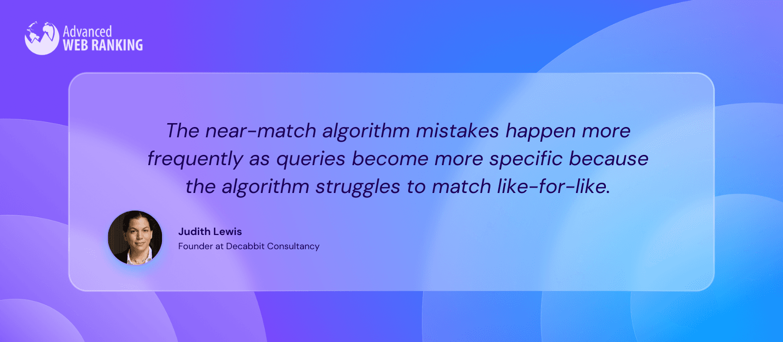 “The near-match algorithm mistakes happen more frequently as queries become more specific because the algorithm struggles to match like-for-like.”