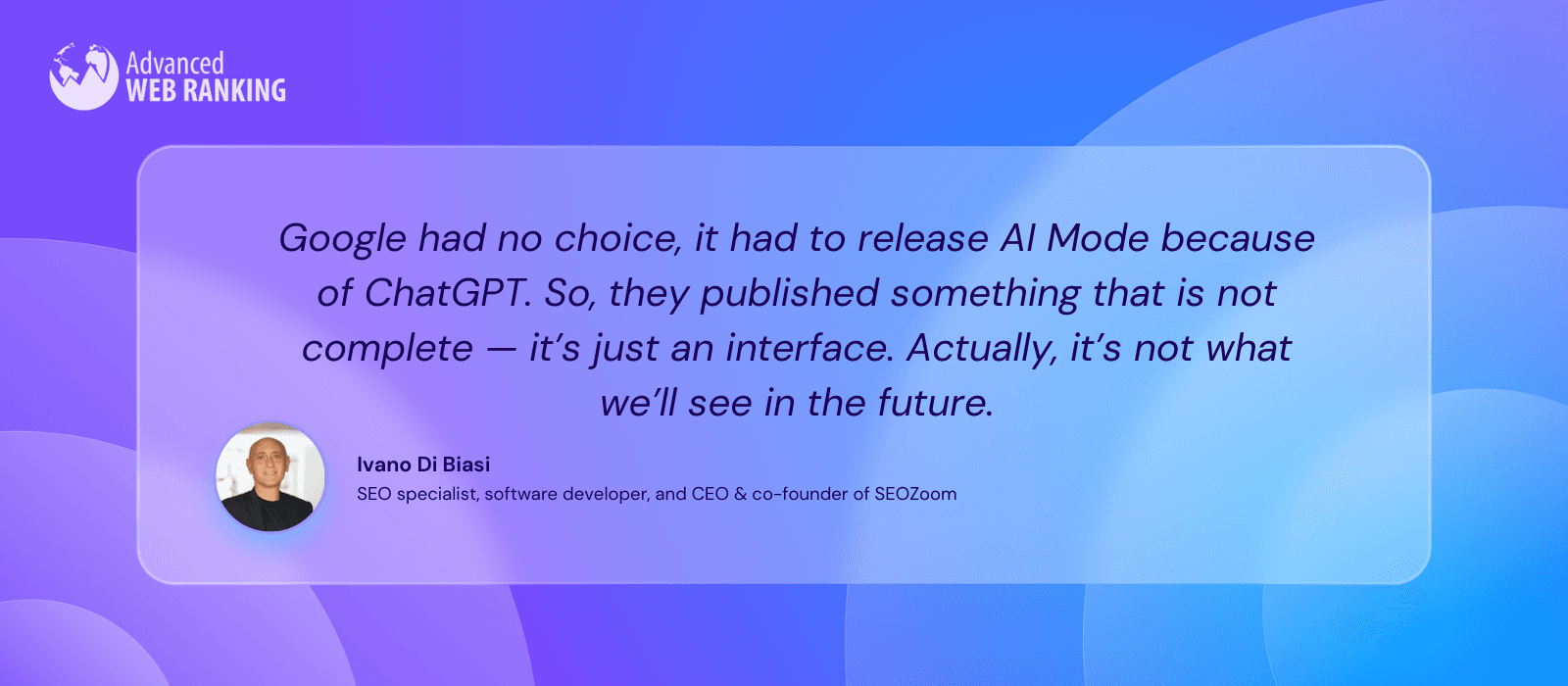 “Google had no choice, it had to release AI Mode because of ChatGPT. So, they published something that is not complete — it’s just an interface. Actually, it’s not what we’ll see in the future.”