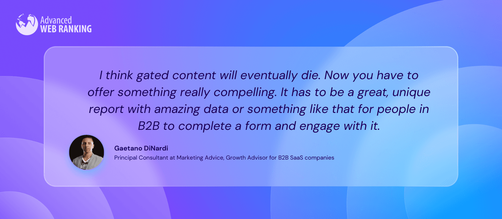 “I think gated content will eventually die. Now you have to offer something really compelling. It has to be a great, unique report with amazing data or something like that for people in B2B to complete a form and engage with it.”