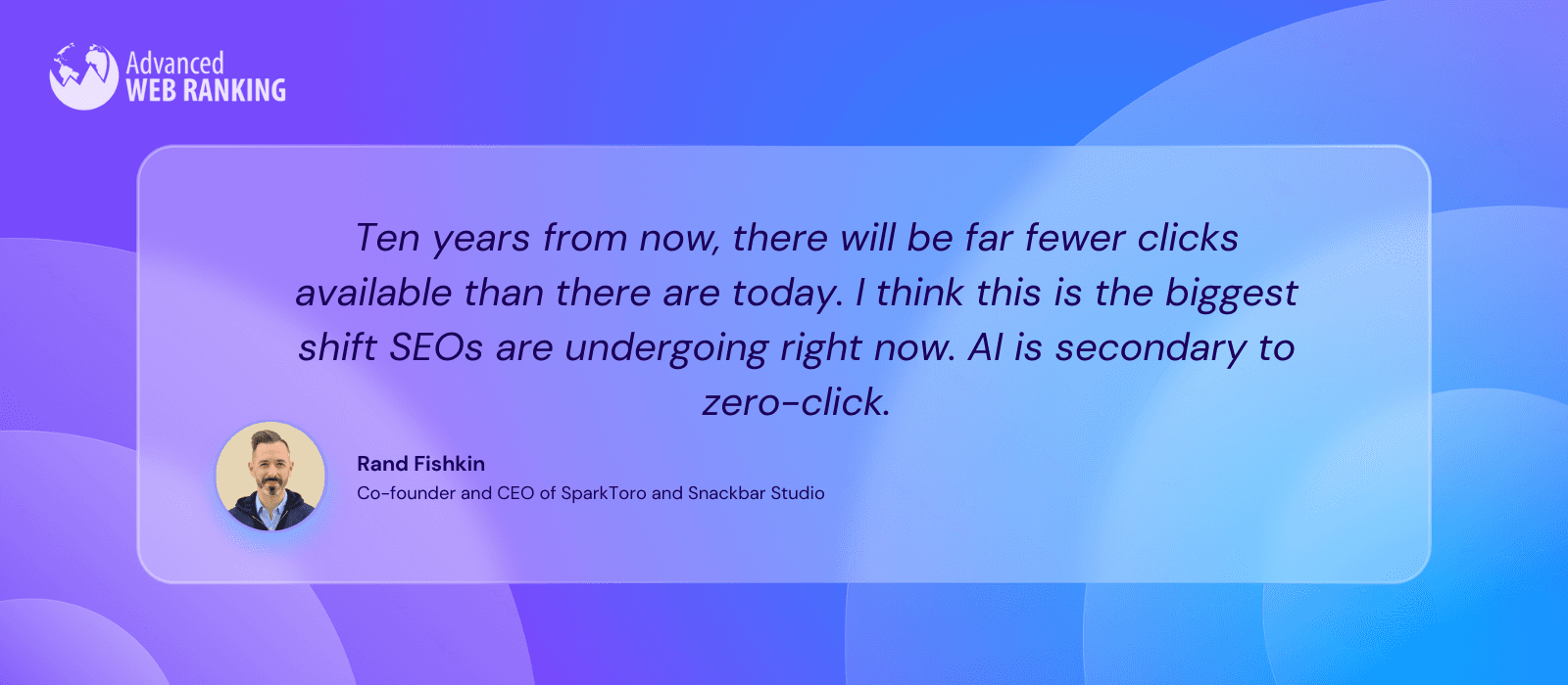 “Ten years from now, there will be far fewer clicks available than there are today. I think this is the biggest shift SEOs are undergoing right now. AI is secondary to zero-click.”