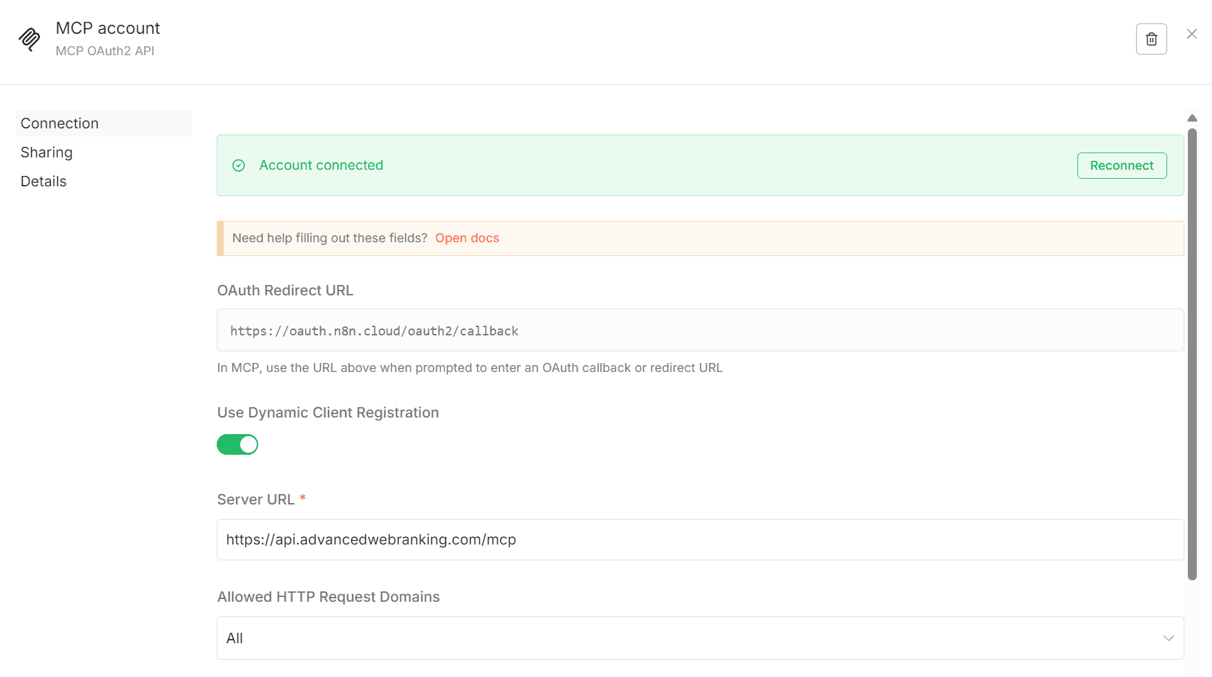 Double click on the AWR MCP Server node in the n8n workflow you just created.