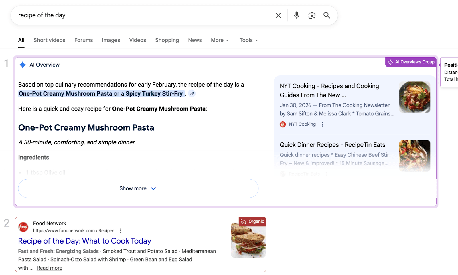 Shows your position among the sources cited inside a Google AI Overview result. This helps you understand how prominently your website appears within the citation group.