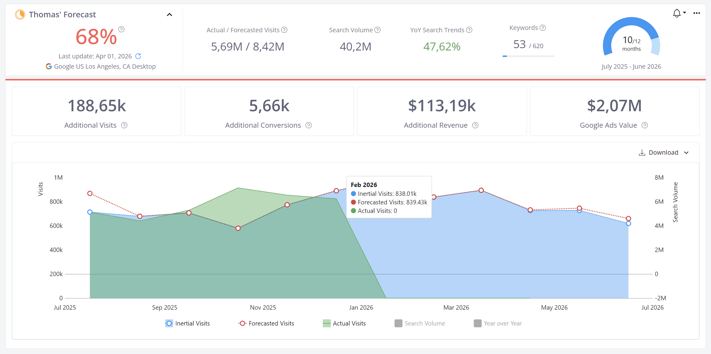 Predict traffic, estimate conversions & prove SEO ROI to stakeholders.